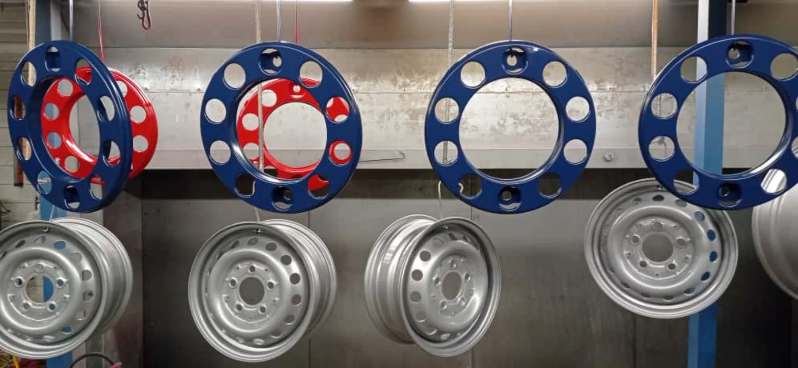 Porównanie stanu felg stalowych przed i po usłudze Lakierowanie proszkowe